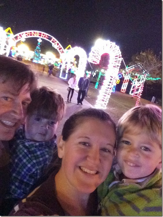 The Christmas party that was supposed to happen at our house last Thursday afternoon unfortunately got rescheduled. That left us with nothing to do that night. But when Kenny unexpectedly returned early from being gone all week for work, I decided it was a perfect night to take the boys to look at Christmas lights. So, after an early dinner, the four of us piled into the car and headed to Lafreniere Park.