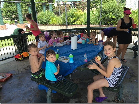 Claire and Colin came over for lunch the Thursday of Vacation Bible School week. Then the next week, while we were at the beach, Diana and Dana got their three kids together for a playdate at City Park. They sent a picture for me to show Riley, saying his girls (and Colin!) missed him.