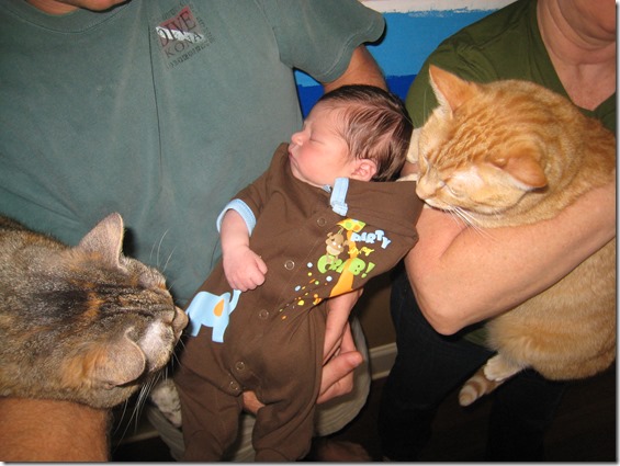 The boys, Rory especially, have wanted to say prayers for Jem and talk about him and remember him. I’m so glad for that. I hope they don’t forget him. Riley was the first tiny person Jem encountered, and Jem wasn’t happy about him at all at first. But he soon succumbed to the new attention and before long he had captured the hearts of all four kids. They adored him.