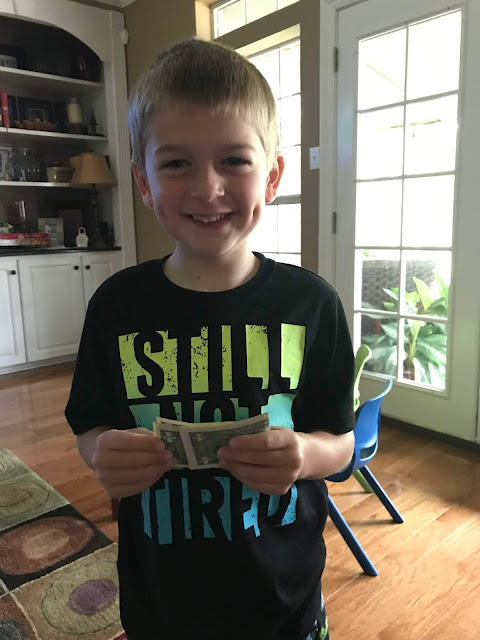 1. Rory lost his first tooth! It came out, with a little help from Mama, on July 12. The Tooth Fairy brought him $2 for it.