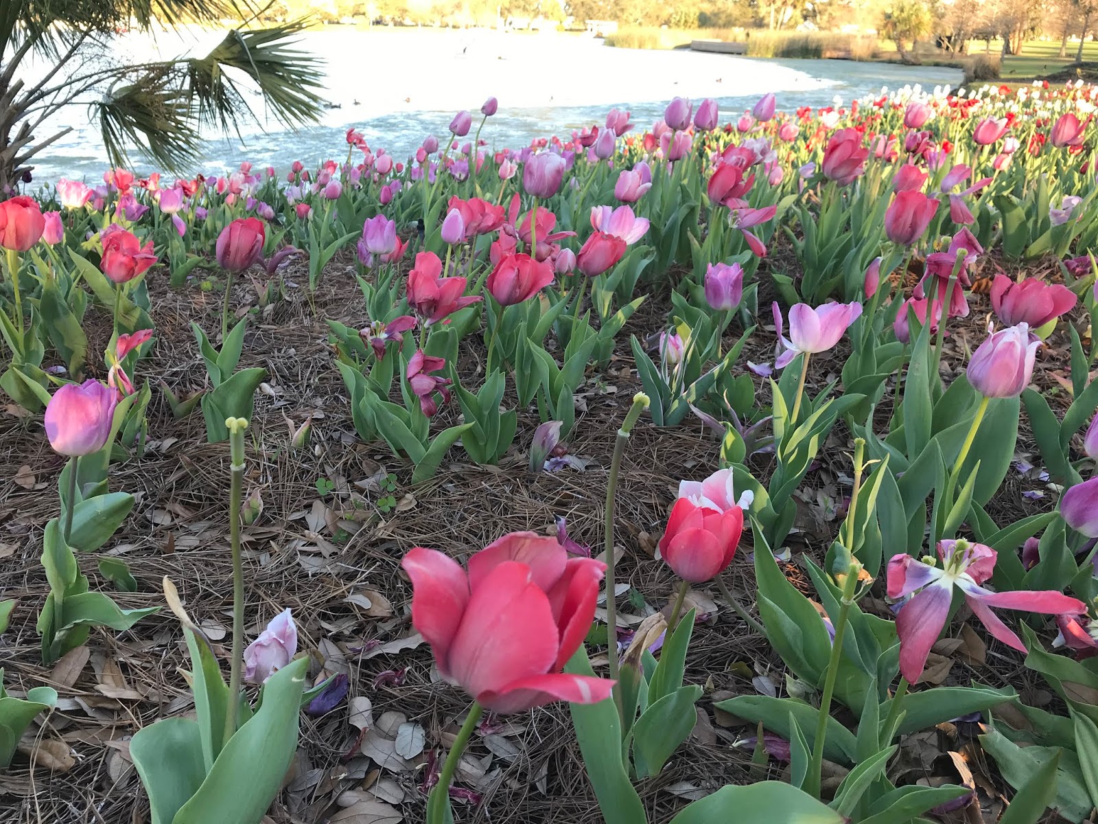 One week later, on February 14, we found ourselves back out at City Park. This time the boys and I drove straight there after school (remember when kids went to school??), and Kenny left work a little early and met us. We never put too much focus on Valentine's Day, but I thought it would be sweet for the four of us to go see the City Park tulips on that day. So we did!